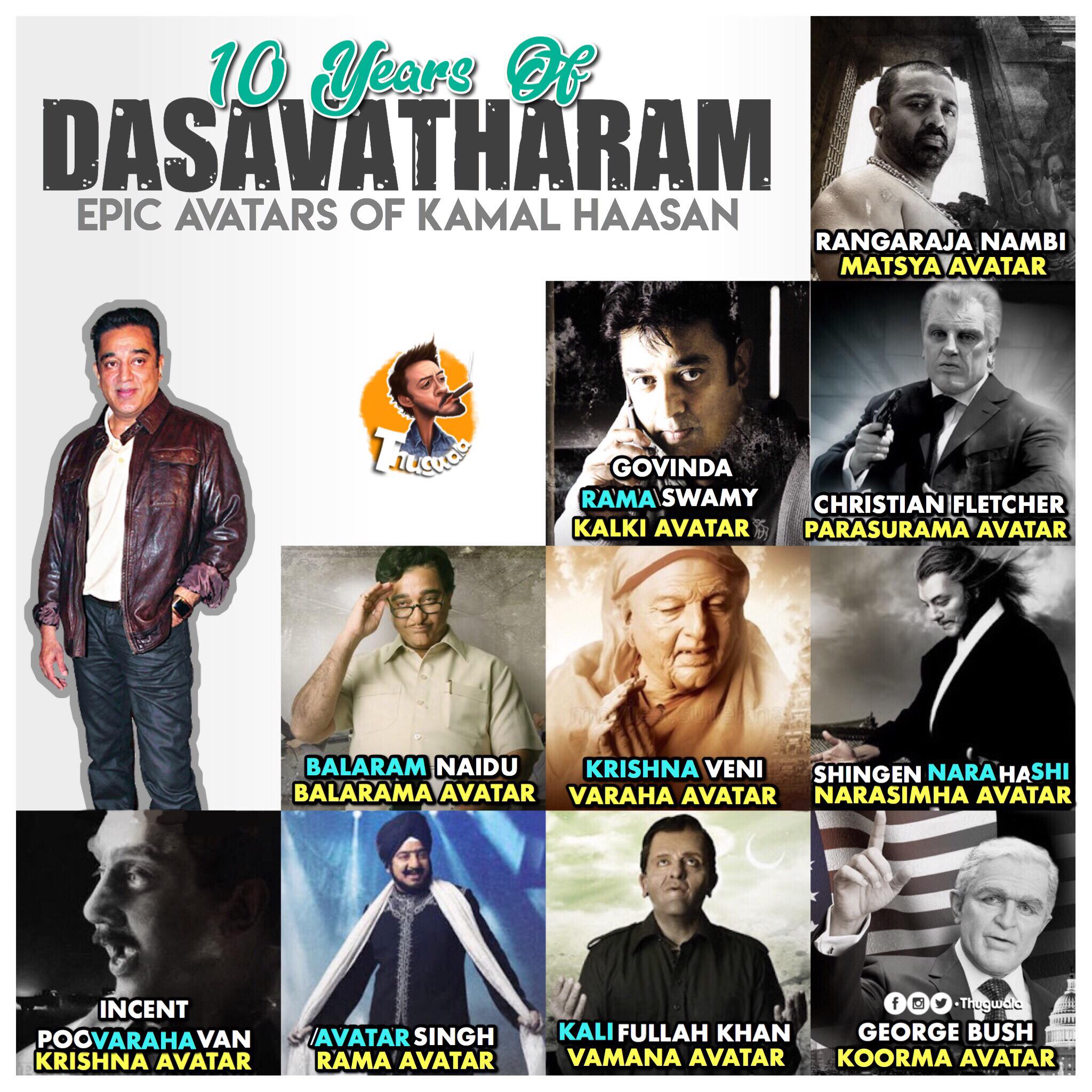 M S Krishna Prateek on X: "#10YearsOfDasavatharam - 1st Kamal Haasan Film I watched in a Theatre & obviously couldn't comprehend the detailing in these 10 avatars when I was 10 but