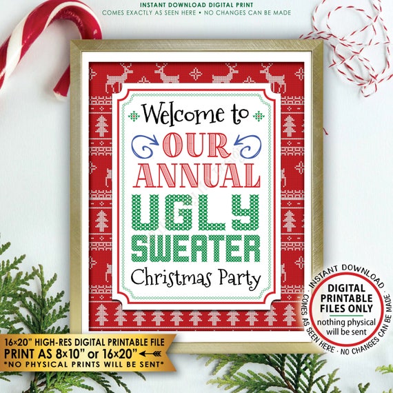 Ugly Christmas Sweater Party, Welcome to Our Annual Ugly Sweater Party Sign, Tacky Sweater Party, PRINTABLE 8x10/16x20 Welcome Sign id - Etsy