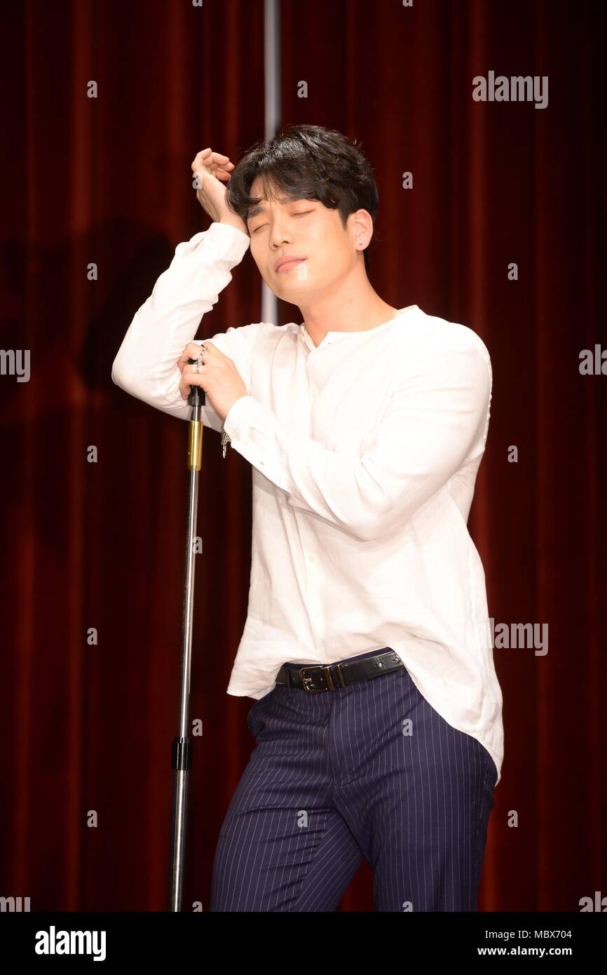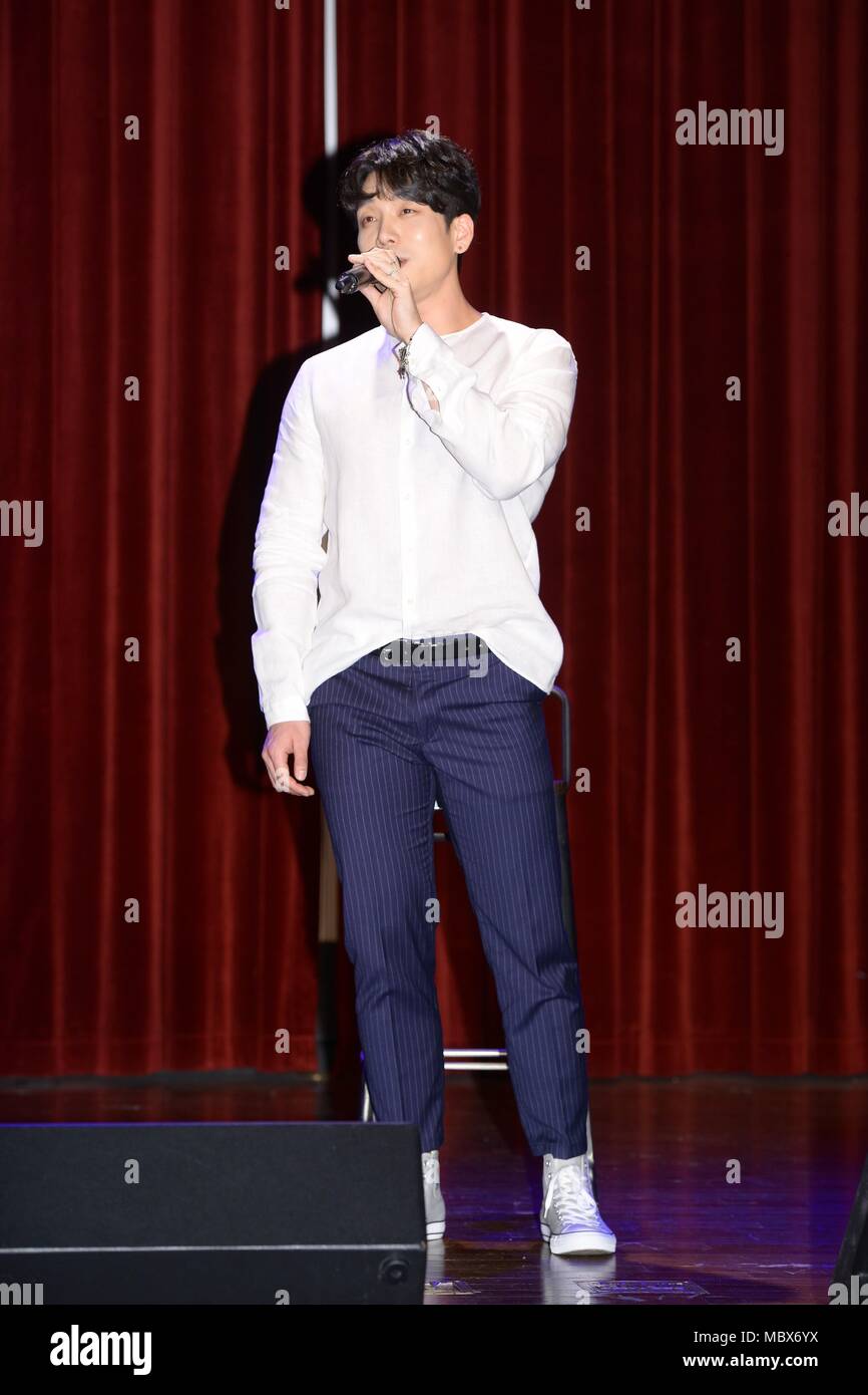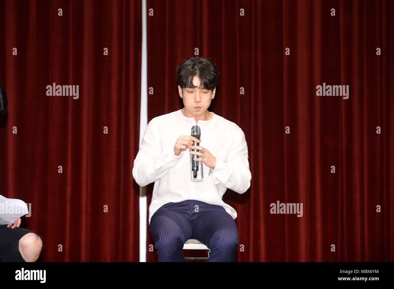 Seoul, Korea. 11th Apr, 2018. Lee Changmin (2AM) held showcase to promote his first solo mini album in Seoul, Korea on 11th April, 2018.(China and Korea Rights Out) Credit: TopPhoto/Alamy Live News
