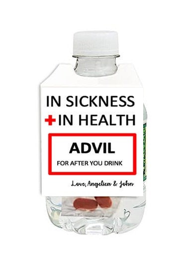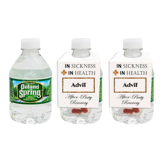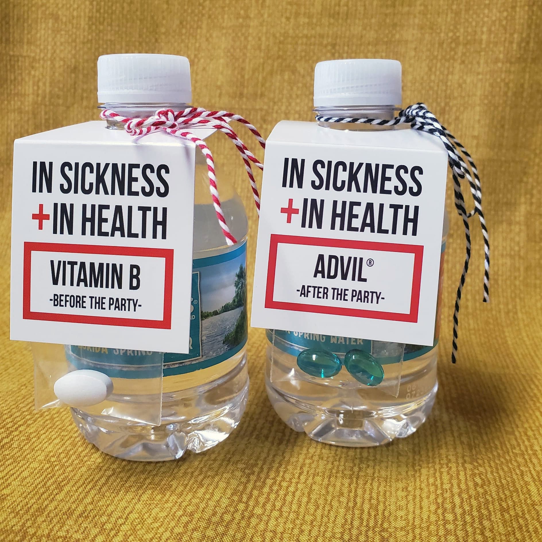 Mini water bottles, B Vitamins, Advil and our darling free printable tags make these the B… | Wedding favors cheap, Edible wedding favors, Wedding favors for guests