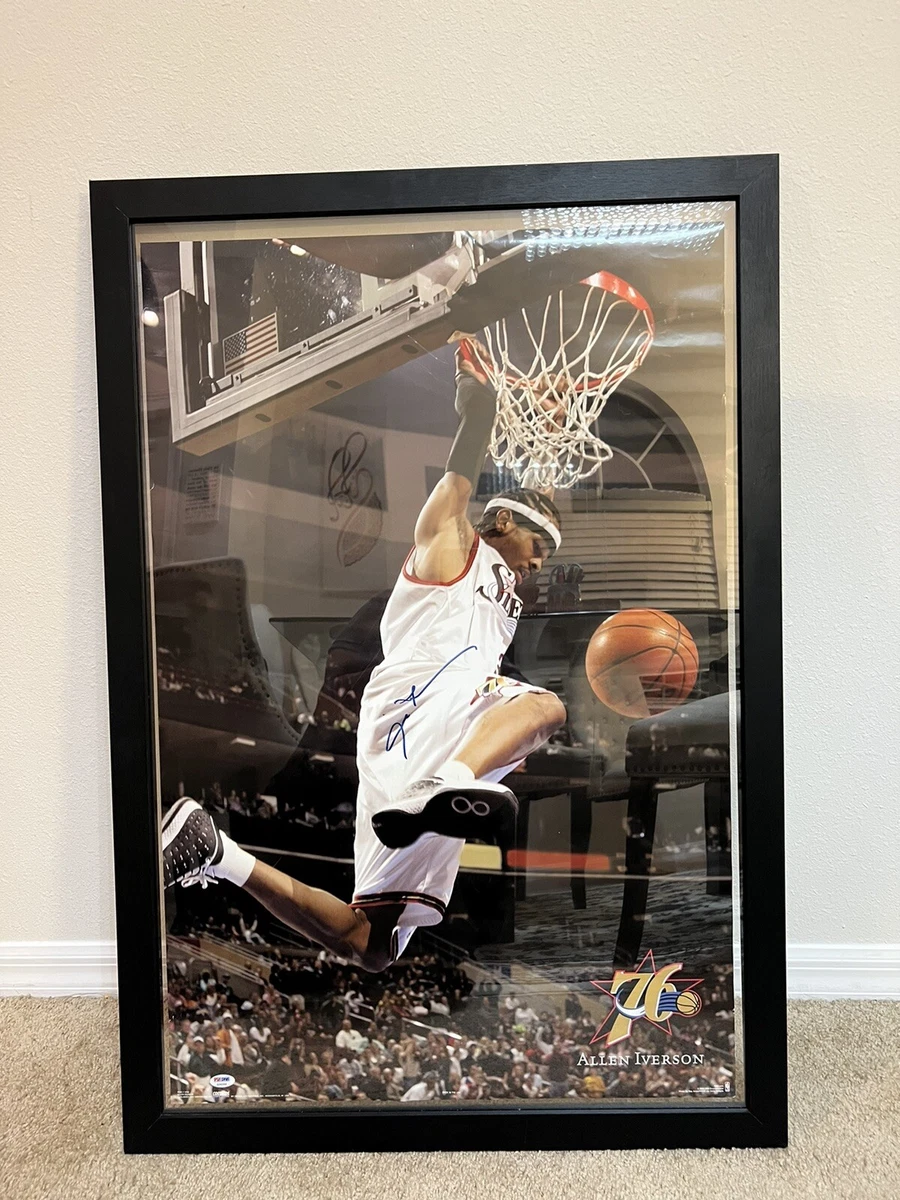 ALLEN IVERSON SIGNED POSTER WITH COA PSA FRAMED 26x38” Dunking Philly 76ers! | eBay