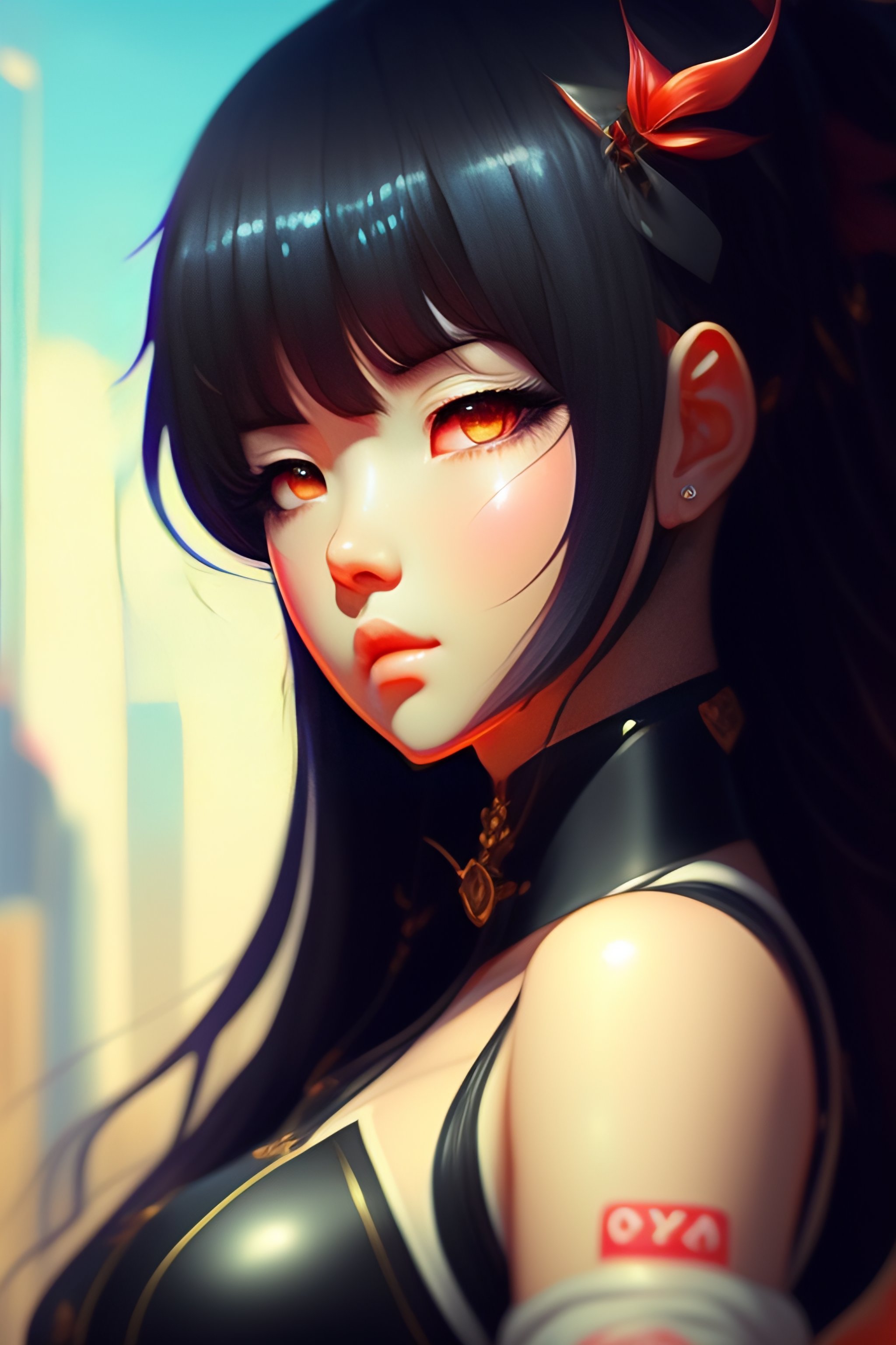 Anime portrait of character glancing with red eyes,... | OpenArt
