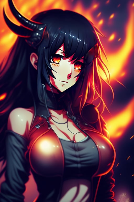 Stable Diffusion prompt: Devil girl. Black long hair. Red - PromptHero