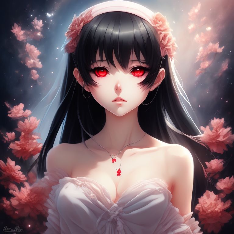 Premium Photo | Anime girl with red eyes and a black dress with a cross on her chest generative ai