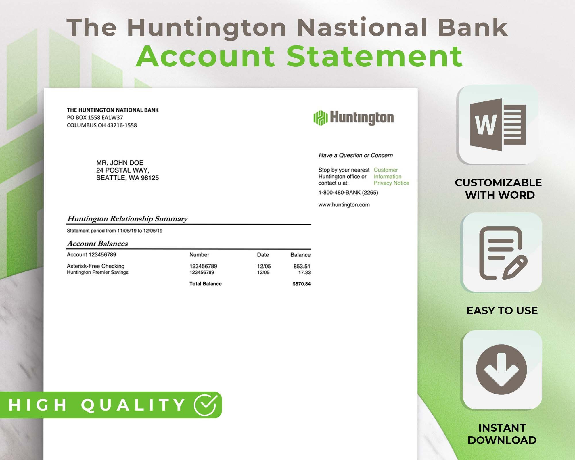 Huntington Bank Statement/ Editable Personal Bank Statement - Etsy Hong Kong