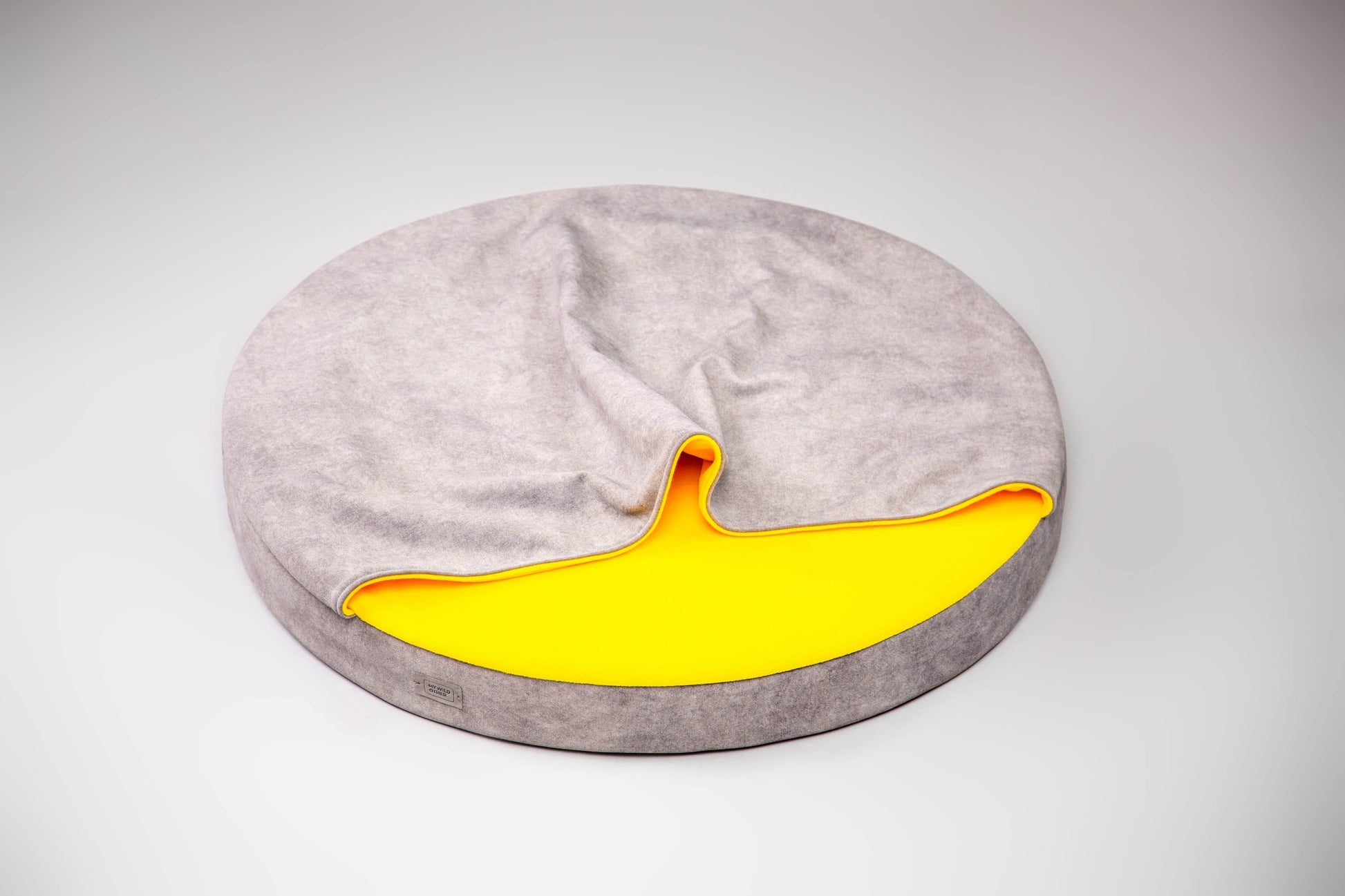 Cozy cave dog bed. STEEL GREY+YELLOW by animalistus | My Wild Other
