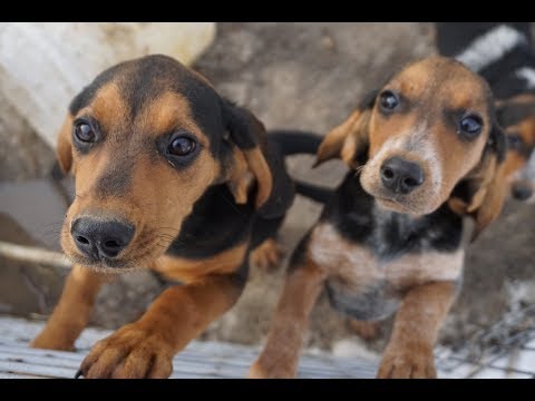 Cute little hound babies. Black and Tan Beagle cross puppies - YouTube