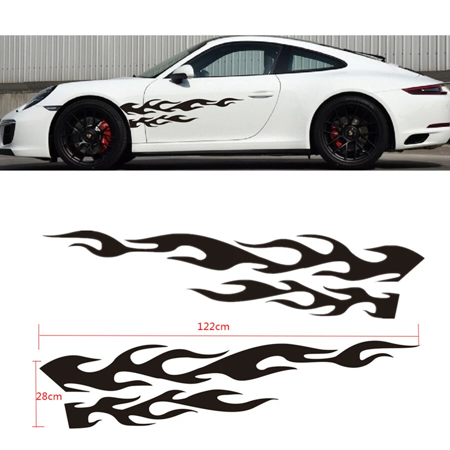 2pcs Universal Car Sticker Flame Pattern Body Door Waistline 122cm Black Racing Car Decoration Styling - Car Stickers - AliExpress