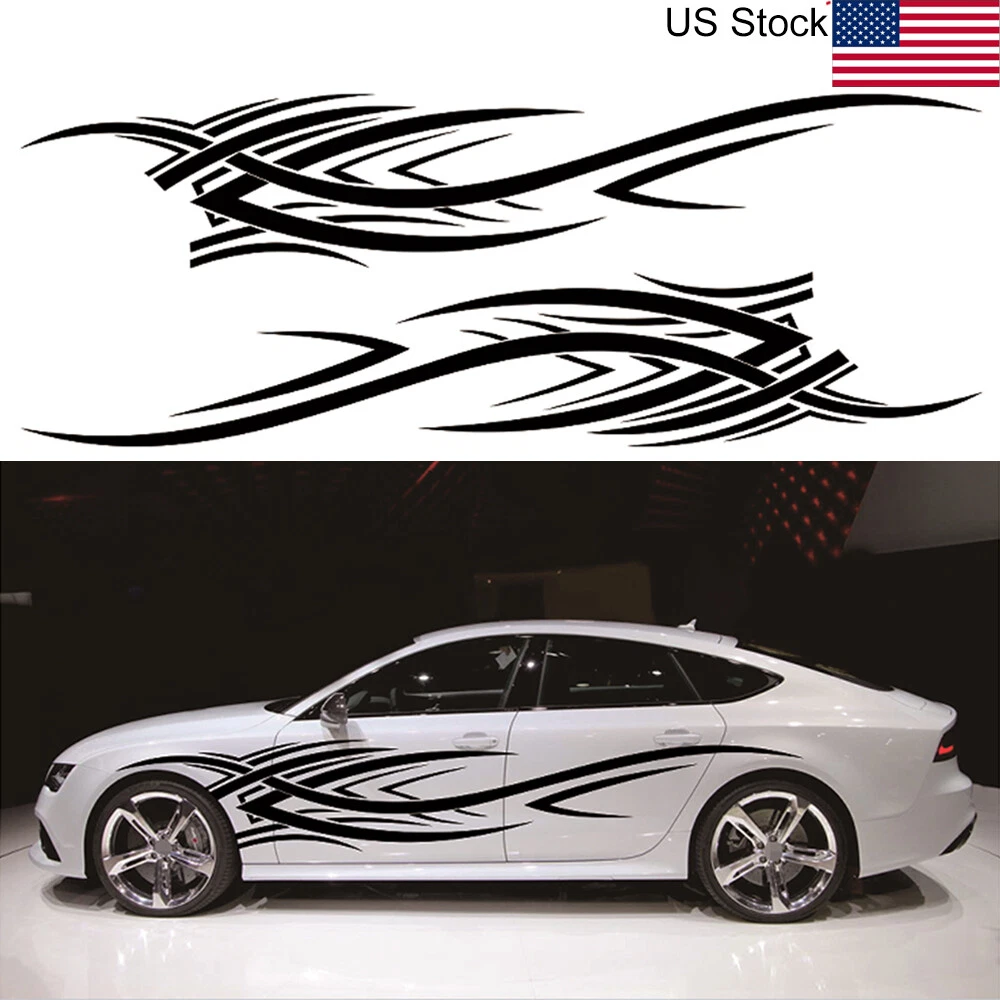 Amazon.com - TOMALL 2Pcs 82'' Wave Flame Graphics Car Body Side Stickers Flame Racing Sports Stripe Decals for Car Universal Vinyl Waterproof Decal Decoration Accessories for Truck SUV Off-Road Vehicles (Black)