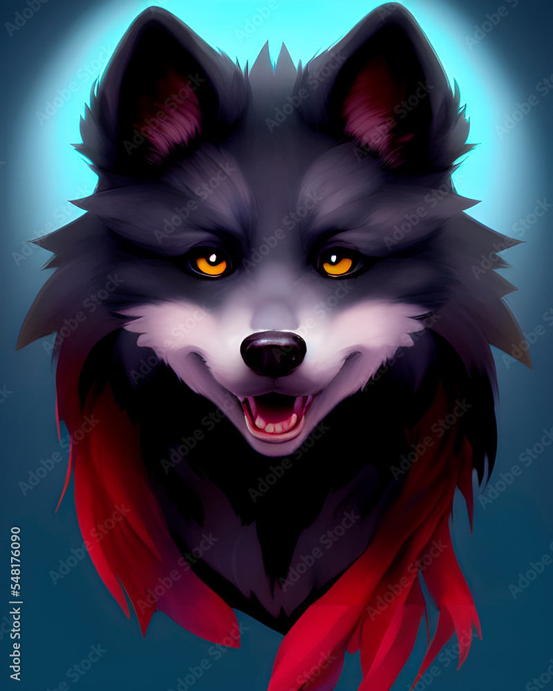 Art of a black anthropomorphic furry wolf with fluffy hair, cartoon style Stock Illustration | Adobe Stock