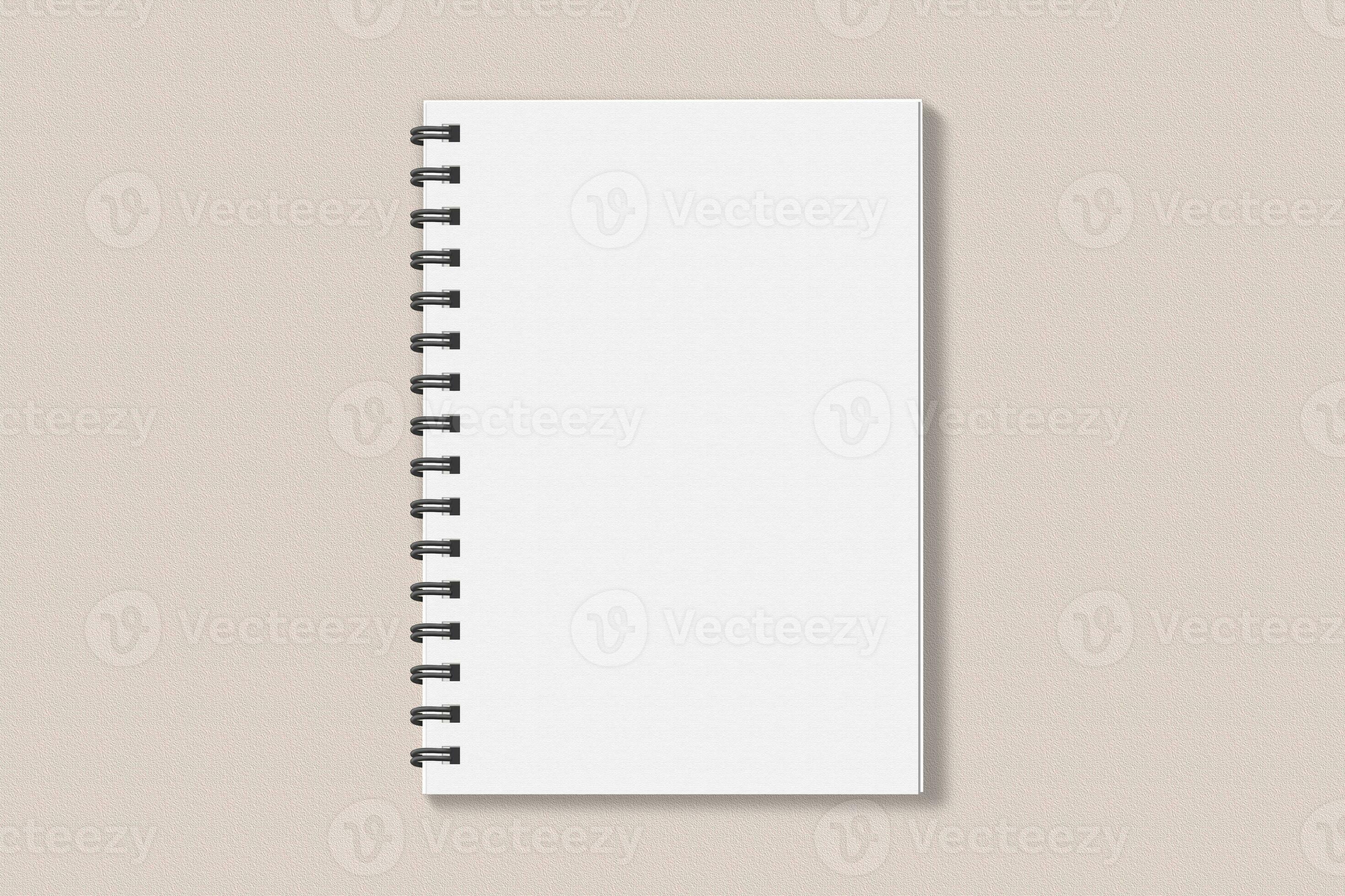 Realistic spiral notebook blank cover mockup flatlay. Simple blank note book mock up on clean background top view. White empty notepad cover to place your design, flat lay concept 23881875 Stock Photo