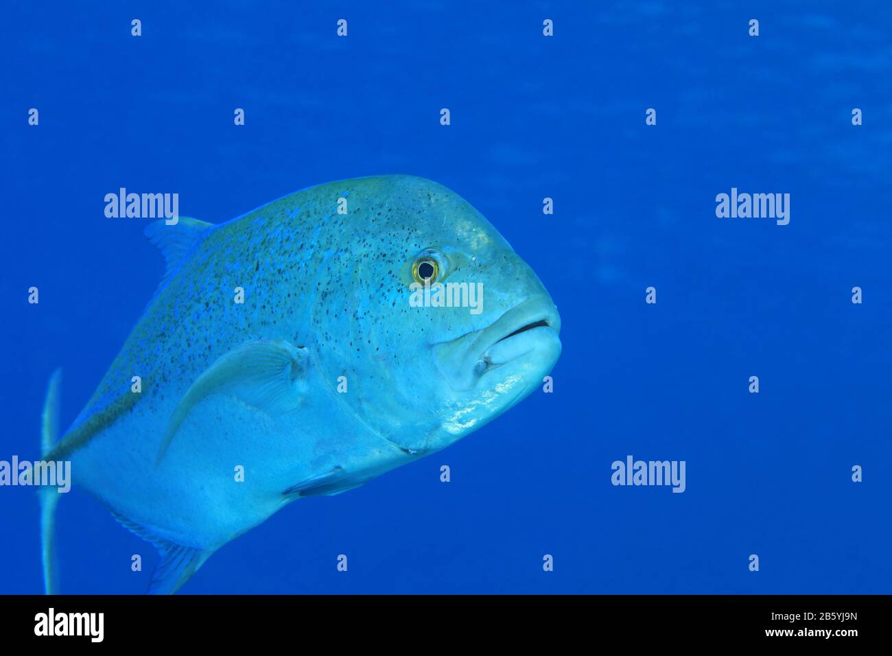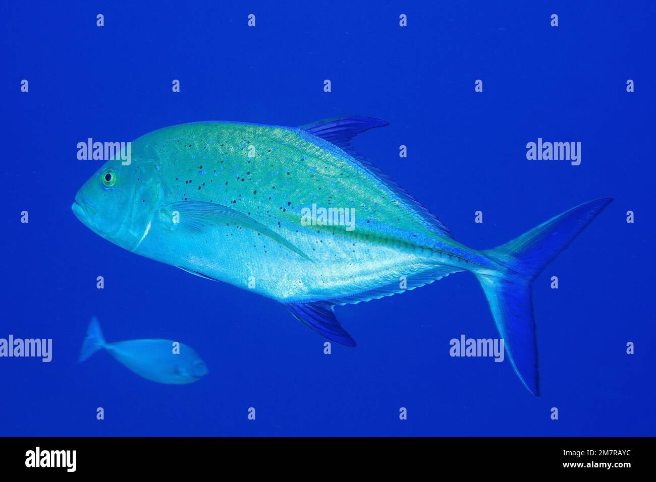 Bluefin trevally (Caranx melampygus) in front of a solid blue background, exempt. Dive site St. Johns, Egypt, Red Sea Stock Photo - Alamy