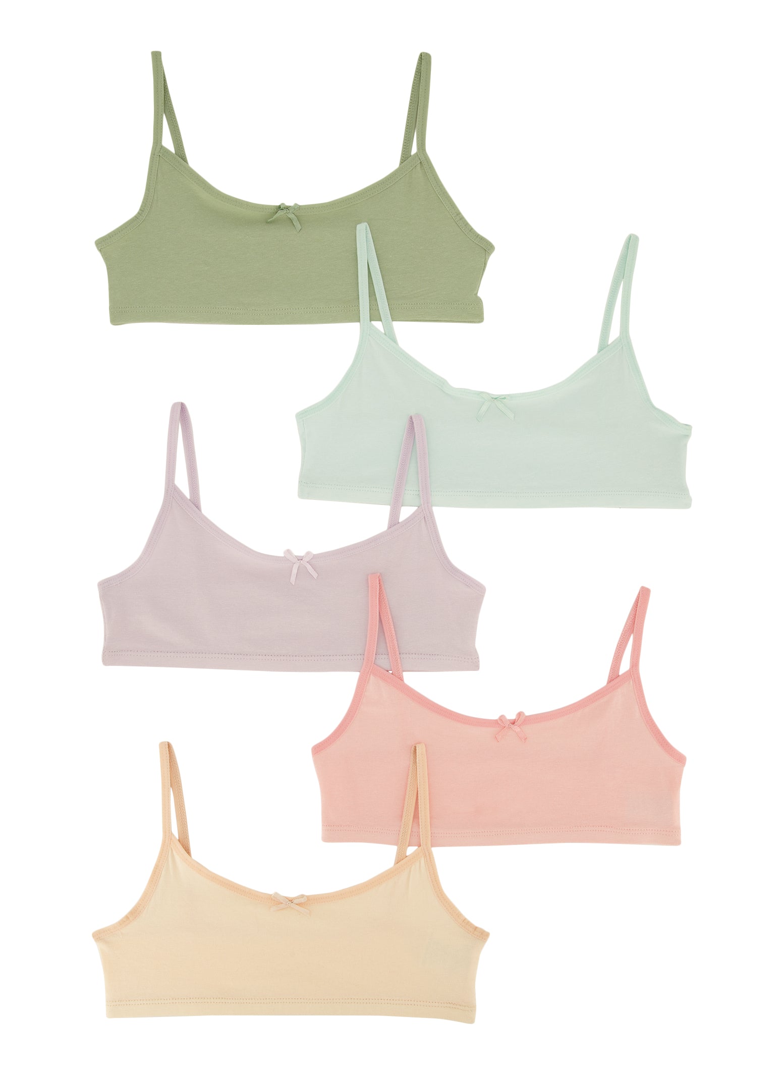 Girls 5 Pack Solid Cami Bras - Multi Color