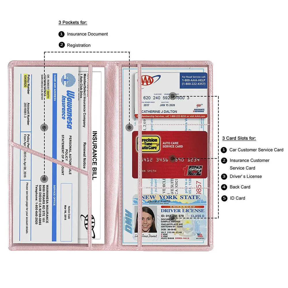 Amazon.com: TILDOSAC Car Registration & Insurance Card Holder๏ผAuto Glove Box Organizer Document Wallet Leather Truck Accessories for Women Men (Pink, large) : Automotive