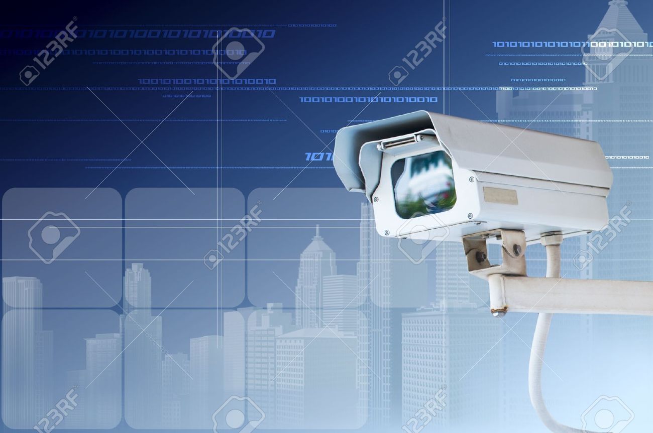 Security Camera Or CCTV On Digital Background Stock Photo, Picture and Royalty Free Image. Image 13525711.