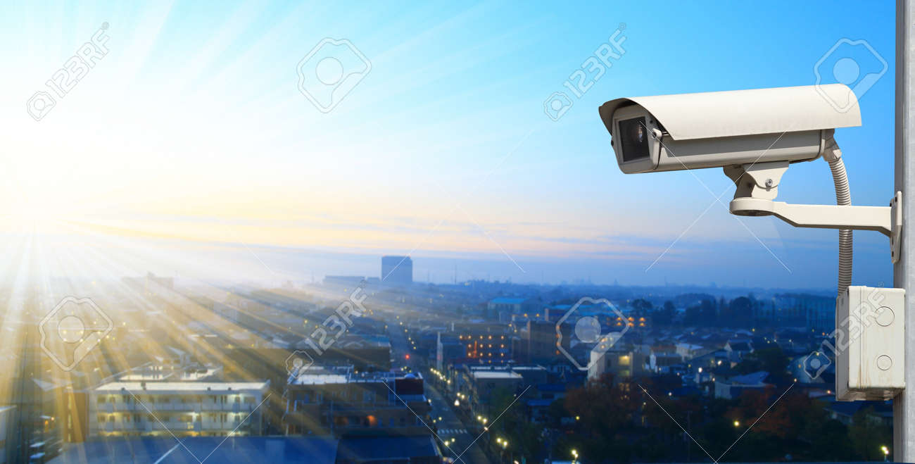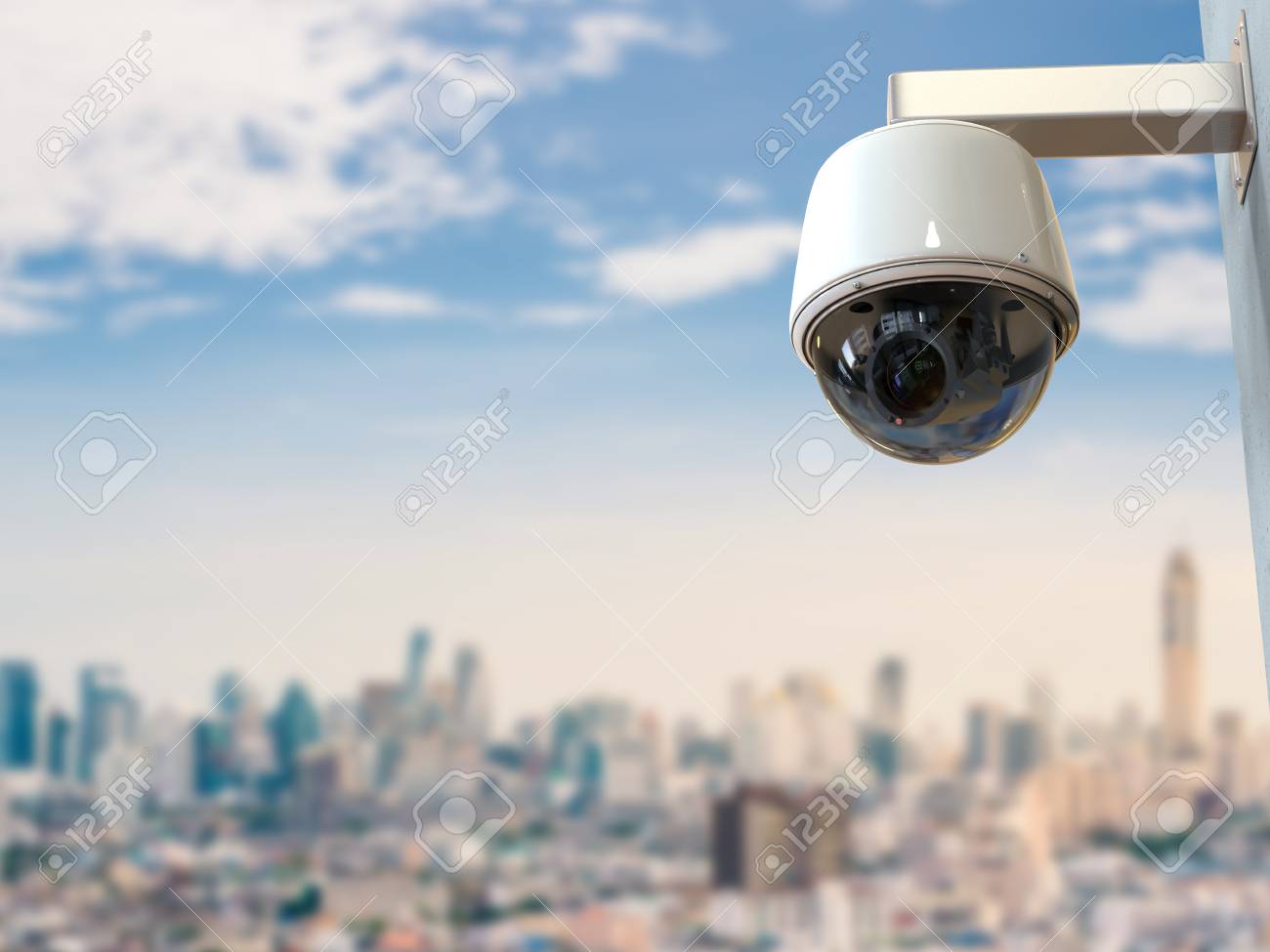 CCTV Camera or surveilance Operating with city in background Stock Photo - Alamy