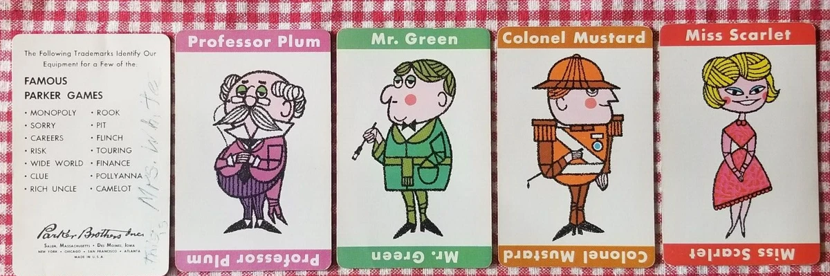 Clue Board Game 1963 Original Character Cards Mr. Green Plum Mustard Scarlet | eBay