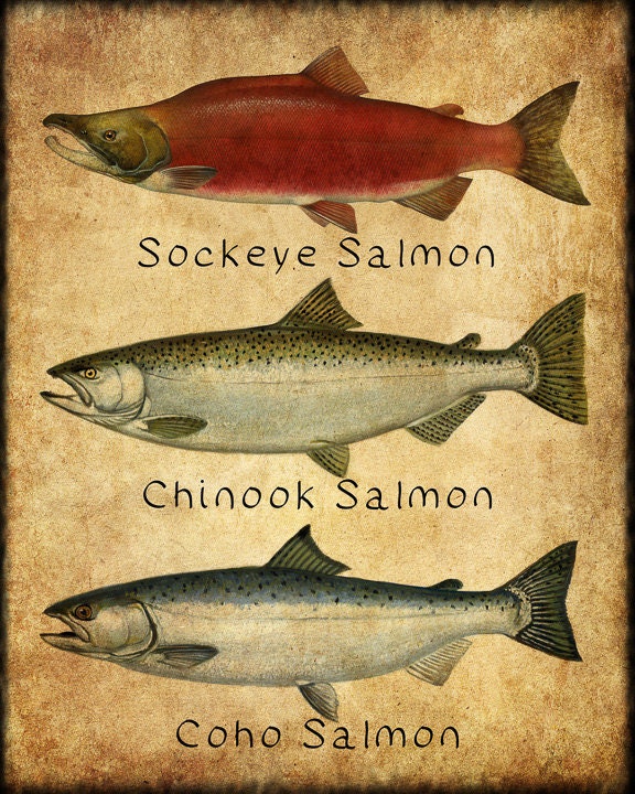 Salmon Poster Fish Print Sockeye Chinook Coho Salmon Print Fishing ...