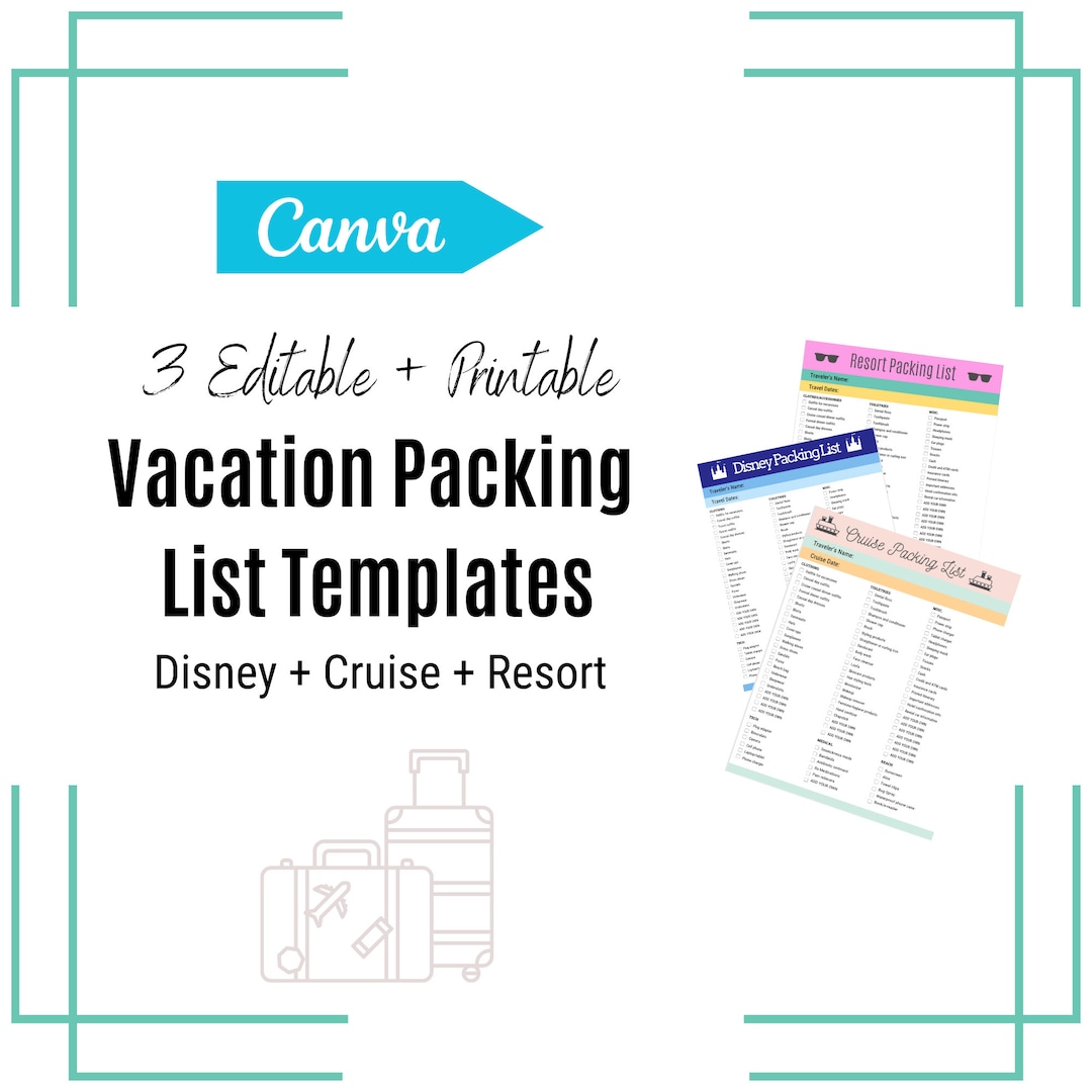 Printable Customizable Vacation Packing Templates Cruise, Resort, Amusement Park Packing List Vacation Packing List Canva - Etsy