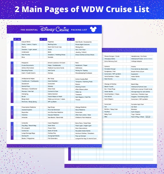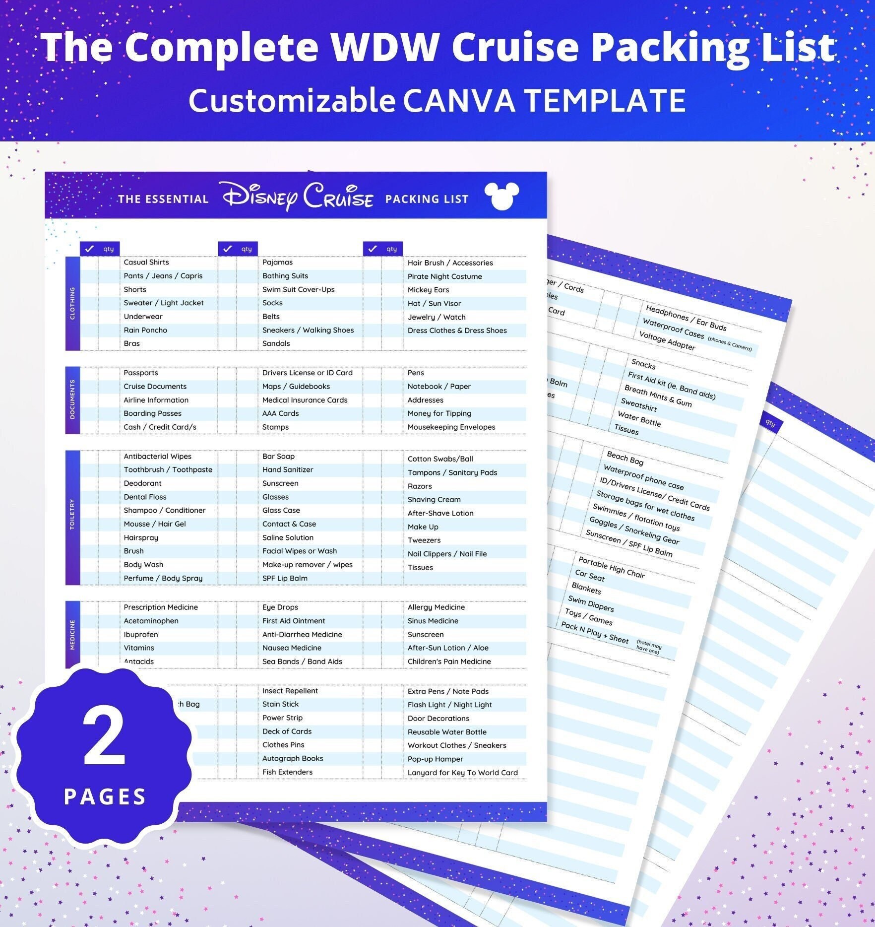 The Essential WDW Cruise Packing List CANVA Template Blank Page Checklist - Etsy
