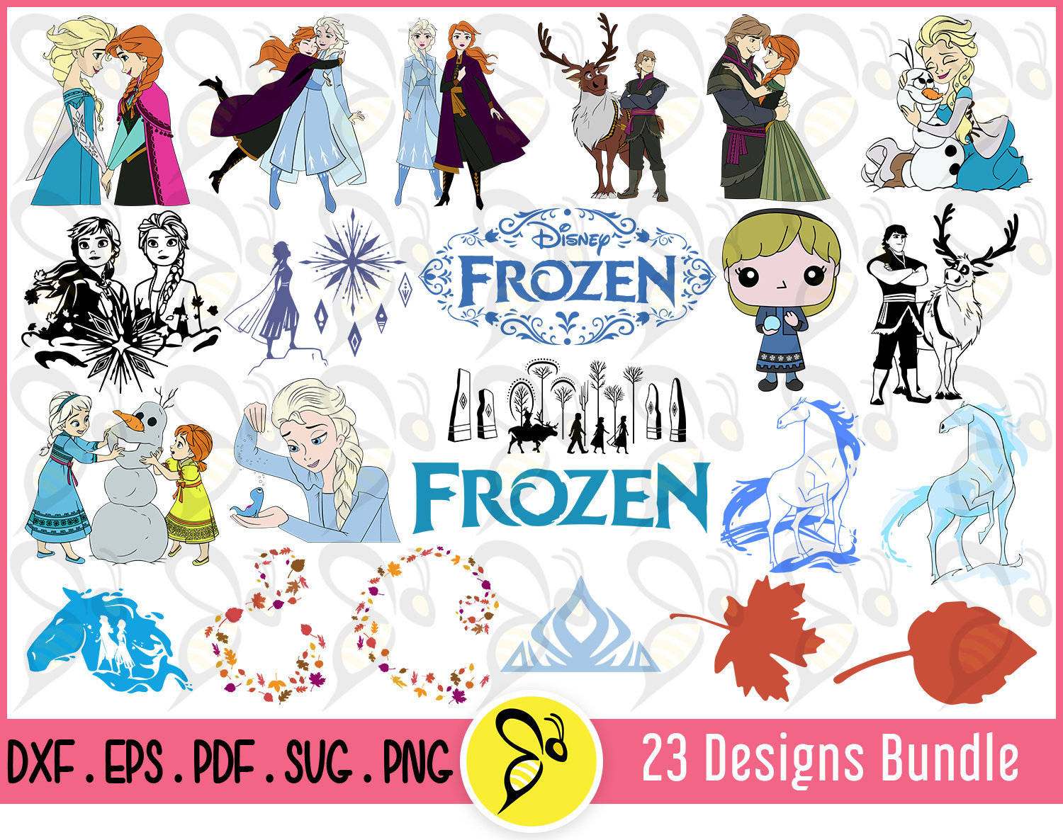 Disney Frozen 2 SVG Bundle-Elsa SVG-Olaf Svg-Elsa Anna Svg-Frozen Logo Vector-Let It Go Svg-Sven Svg SVG PNG EPS DXF