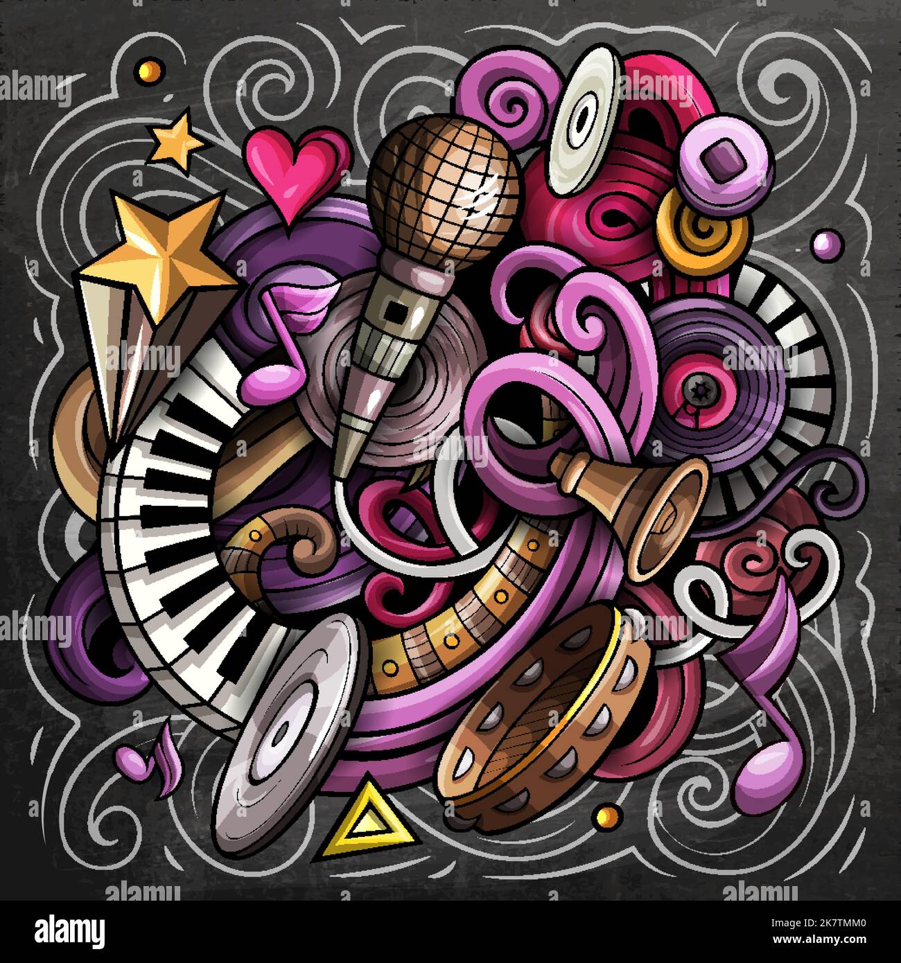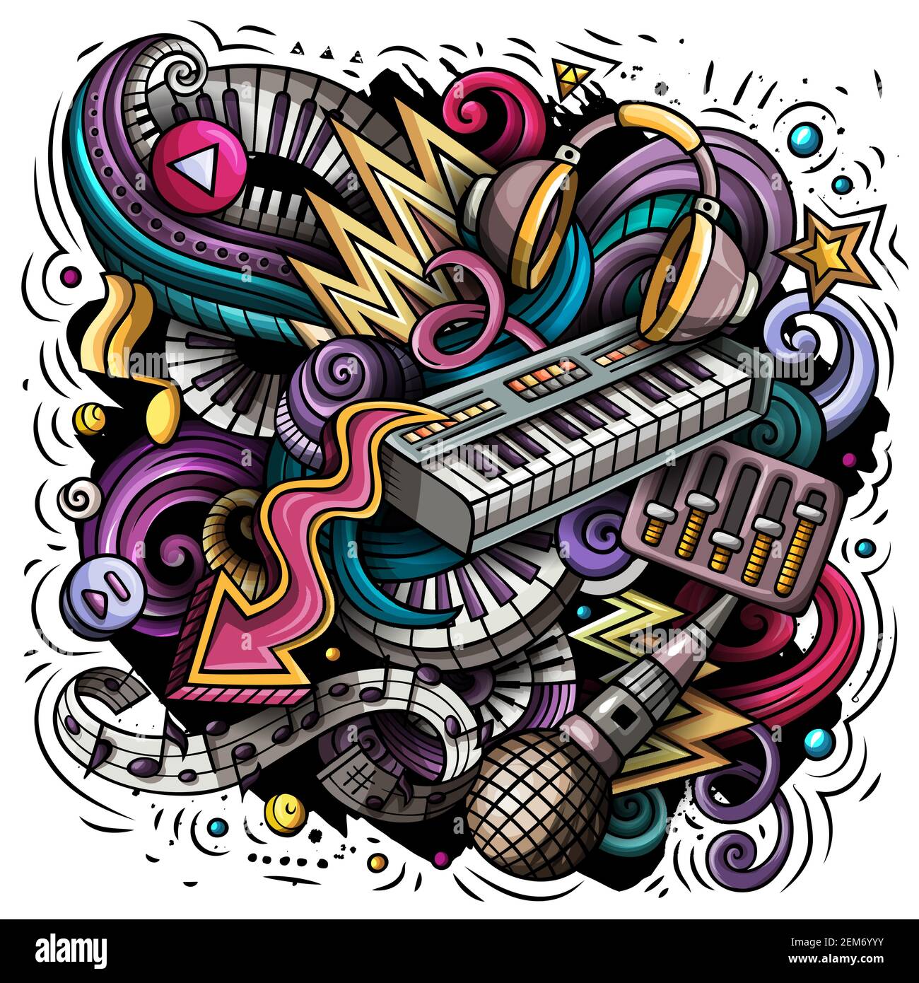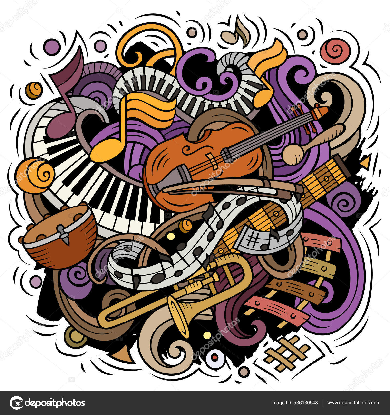 Cartoon vector doodles Classic music illustration. Colorful, detailed, with lots of objects background. All objects separate. Bright colors musical fu Stock Vector Image & Art - Alamy