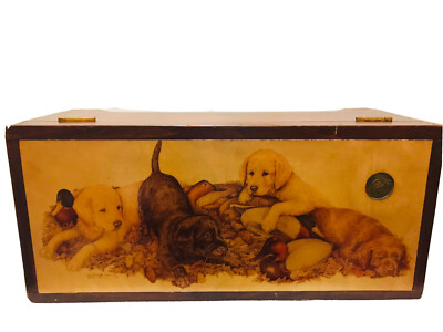 Vintage Ducks Unlimited Wooden Chest Box Lab Retriever Puppies ...