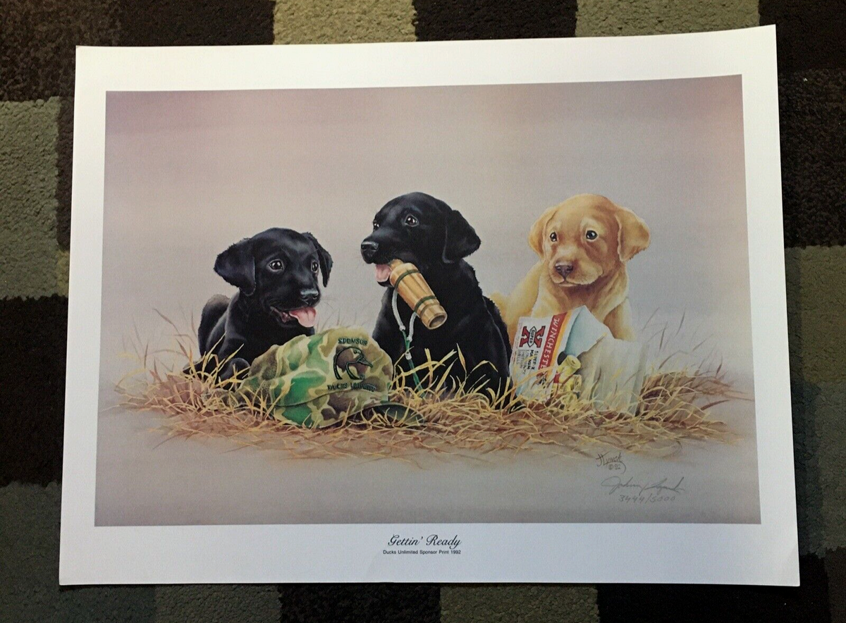 Ducks Unlimited Black Lab Puppy Print, Framed & Matted, Signed ...