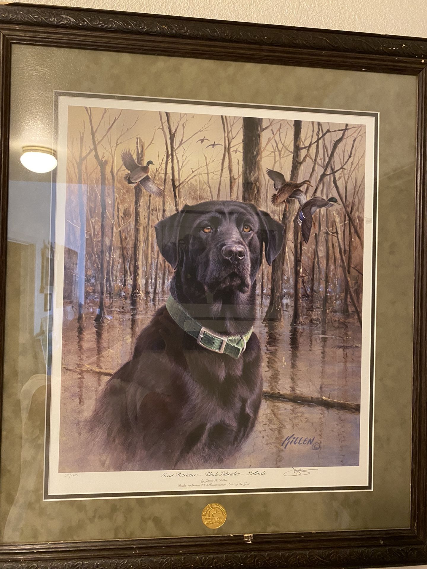 Large Ducks Unlimited Black Lab Picture Signed/numbered