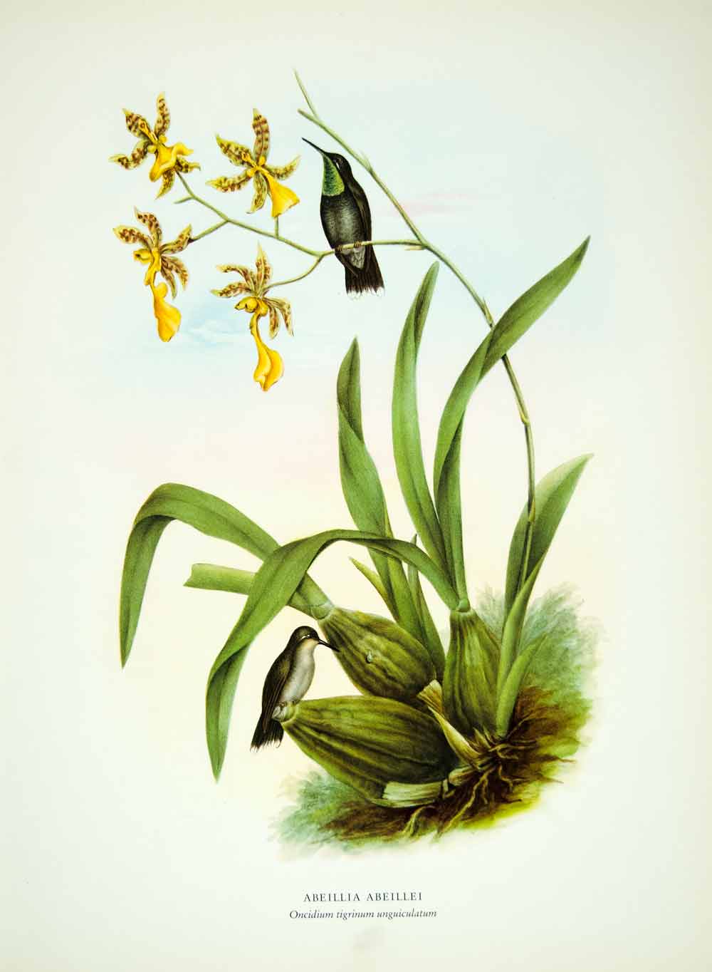 1963 Color Print Emerald Chinned Hummingbird Abeille Animal ...