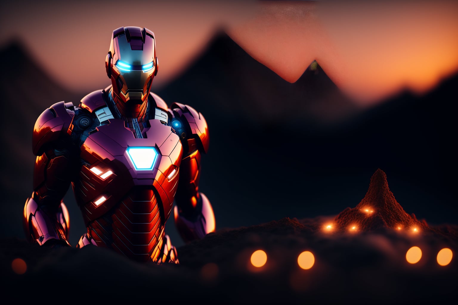Metallic Mech, castle, dark, dusk, epic background - AI Generated Artwork - NightCafe Creator