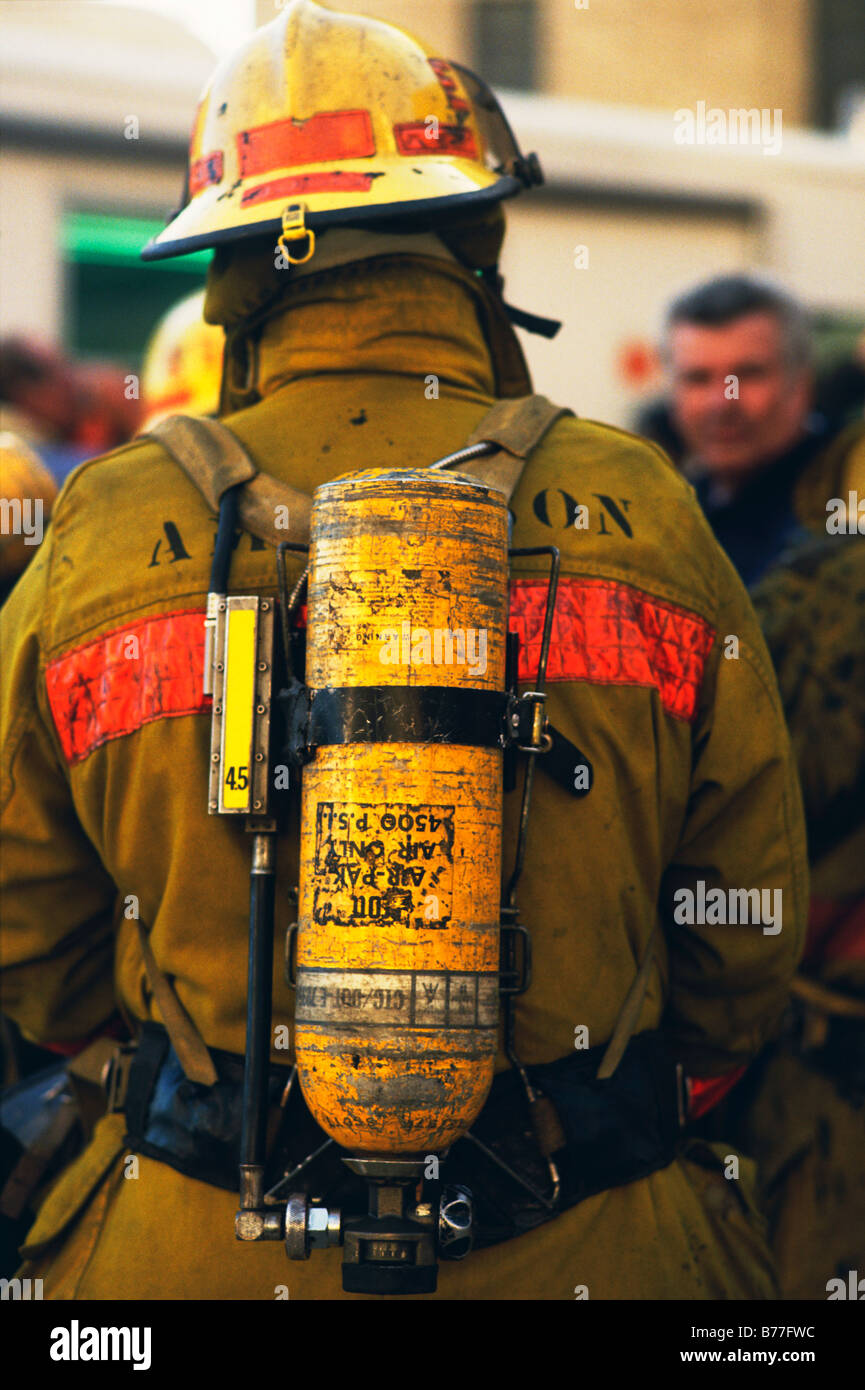Firefighter fire air tank Stock Photos and Images | agefotostock