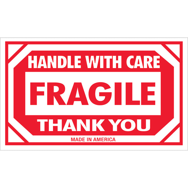 Fragile Labels | 3" x 4" Fragile Handle With Care Label, Reverse | America\