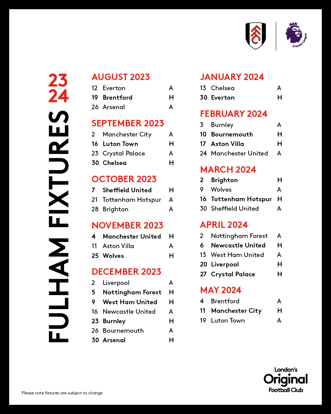 Fulham 2023/24 Premier League Fixtures And Full Schedule