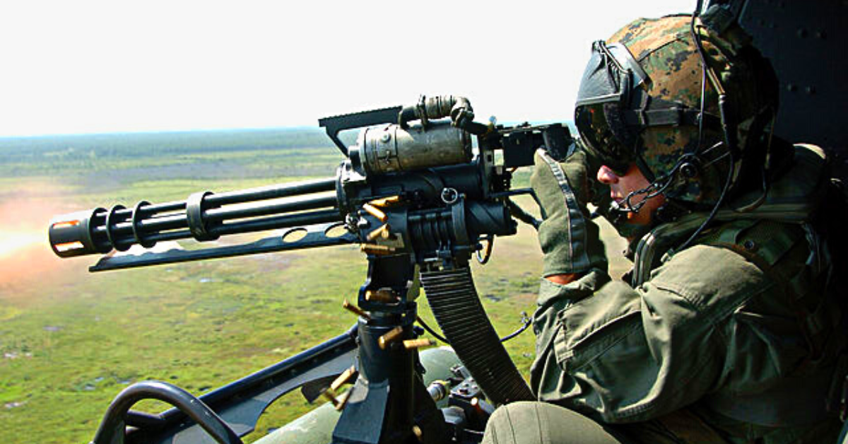 22 Cal Gatling Gun Tippmann, The Bell UH-1Y Venom (also called Super Huey) helicopter conducts a live-fire training with the GAU-21.