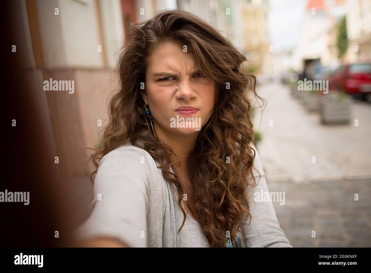 Beautiful brunette young woman with sad face. Sad expression, sad ...