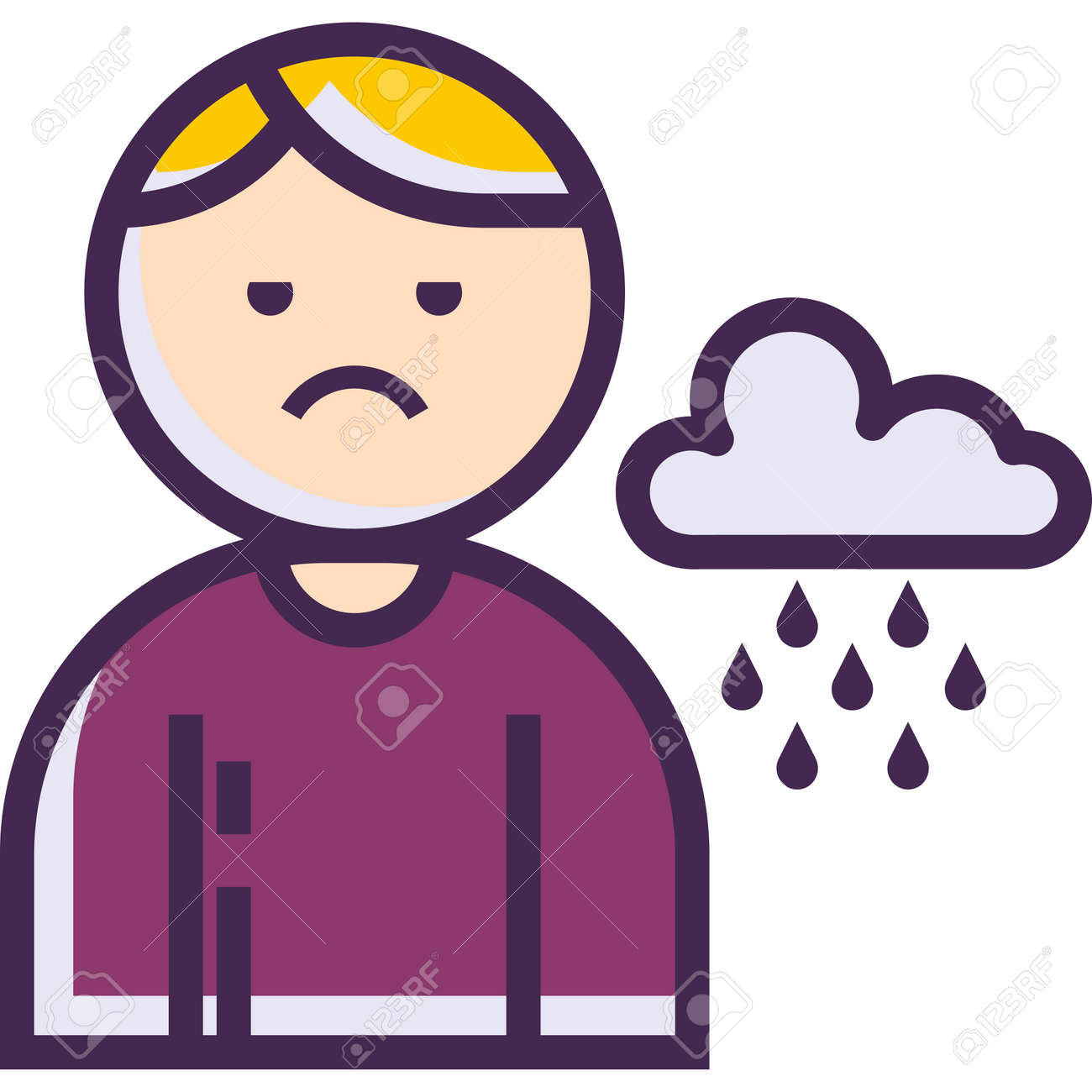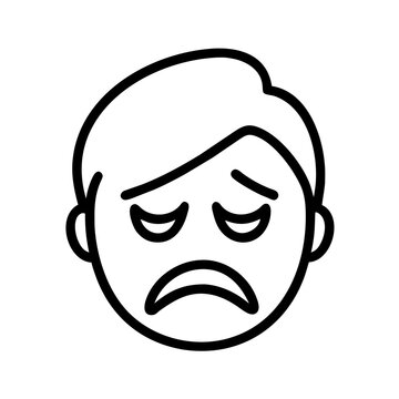 Line Vector Icon Illustration Of Male With Gloomy Face And ...