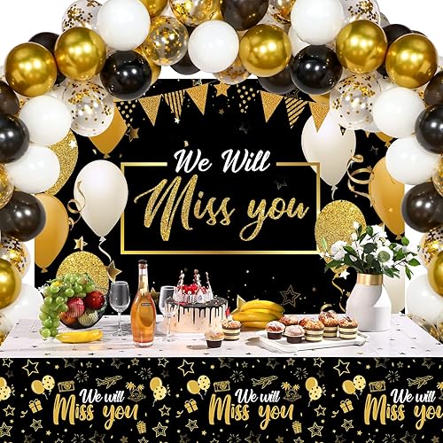 We Will Miss You Party Farewell Decorations Set, Going Away Party Decorations Includes Miss You Backdrop Banner, Miss You Table Covers and Multicolor Balloons for Anniversary Retirement (Gold) in Saudi Arabia |