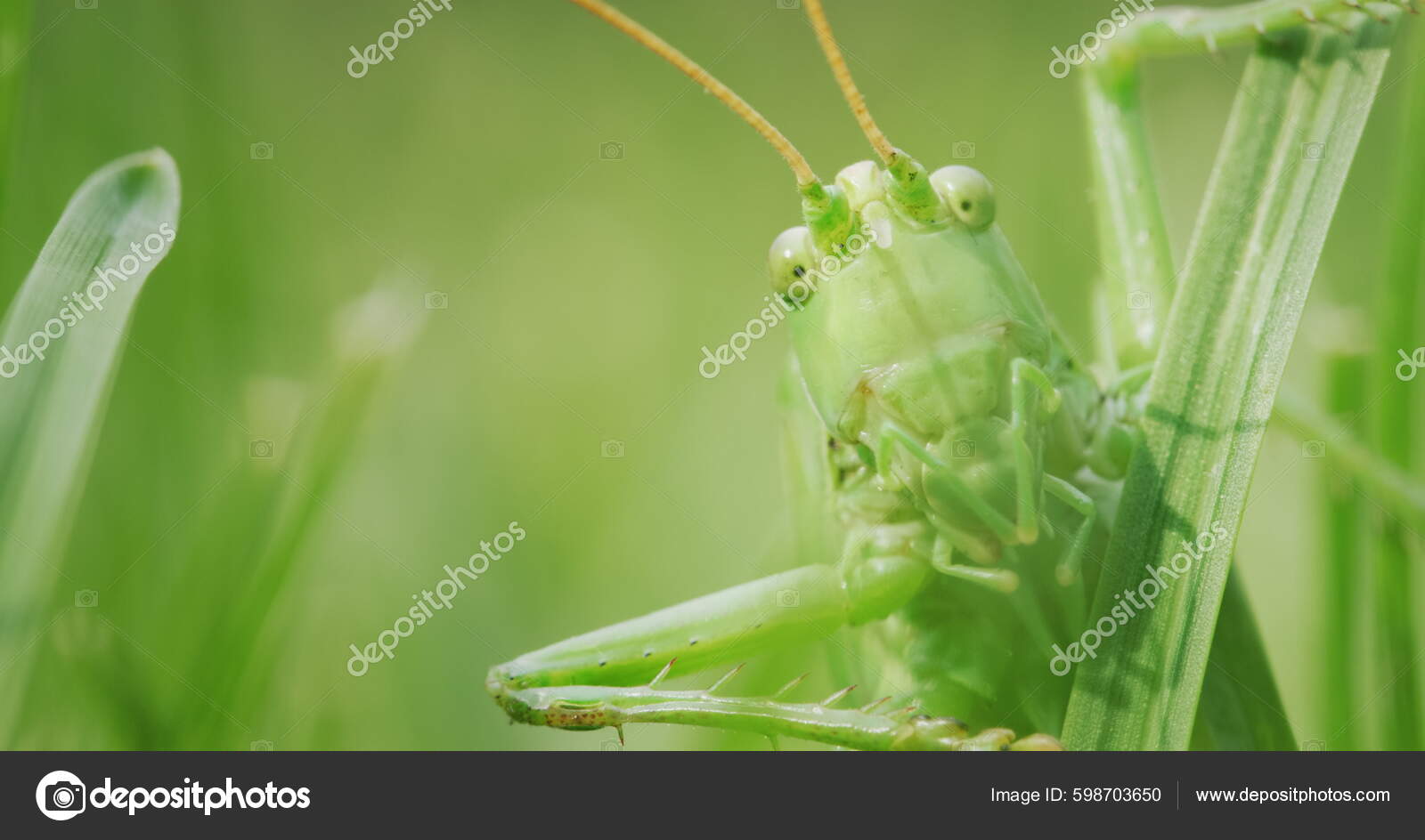 Big Green Locust Eating Grass Macro Shot Stock Photo by ©StockSeller 598703650