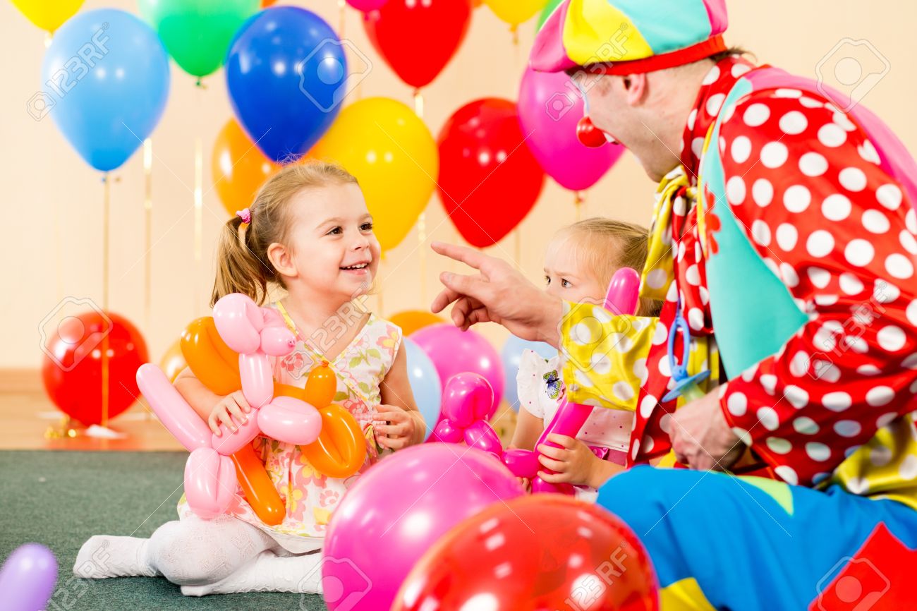 Happy Kids And Clown On Birthday Party Stock Photo, Picture and Royalty Free Image. Image 20338012.