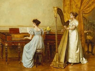 Exquisite Oil Painting of Teresa on the Harp by Henry Wingate