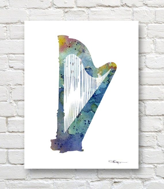 Blue Harp Art Print Abstract Watercolor Painting Music Wall Decor - Etsy UK