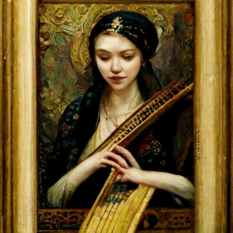Prompthunt: Renaissance painting young beautiful Russian woman playing harp