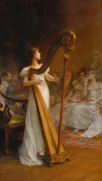 Playing The Harp Artwork By Therese Schwartze Oil Painting & Art Prints On Canvas For Sale - PaintingStar.com Art Online Store