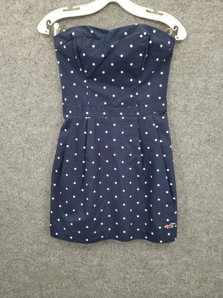 Women Hollister Blue And White Polka Dot Strapless Mini Dress Casual Size Small | eBay