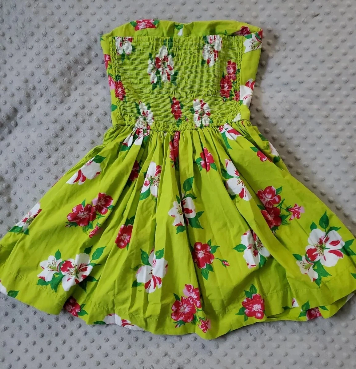HOLLISTER Dress Lime green FLORAL Strapless Elastic Smock Back Gathered Skirt XS | eBay