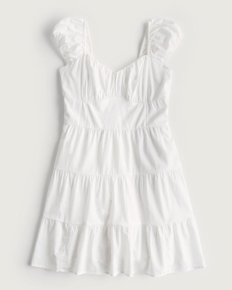 Hollister Layered Eyelet Dress In White With Puff Sleeves for Women