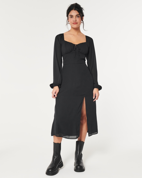 Hollister floral long sleeve dress in black with sweetheart neckline | ASOS