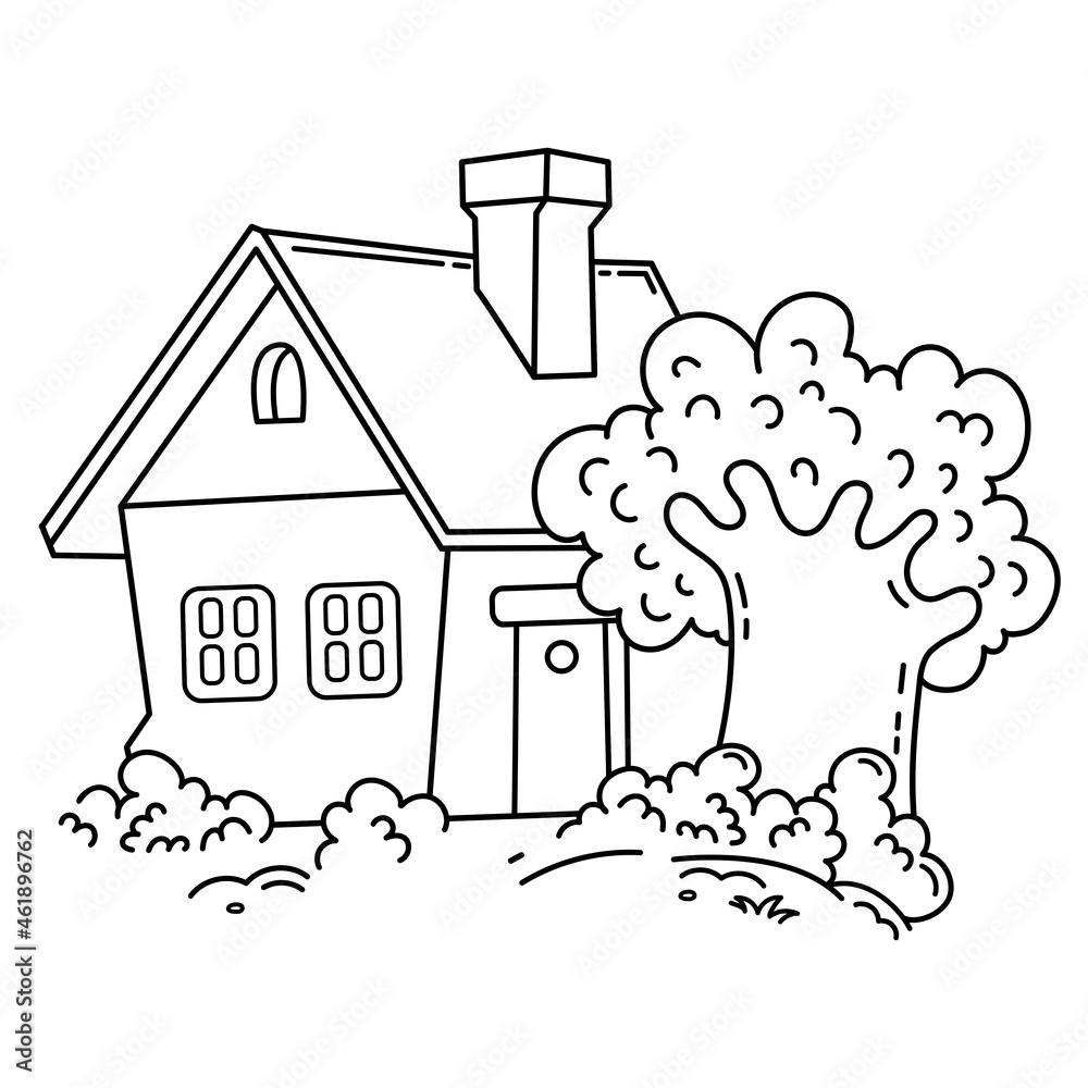Coloring Page Outline Of cartoon cute village home. Country house. Summer cottage. Coloring Book for kids. Stock Vector | Adobe Stock
