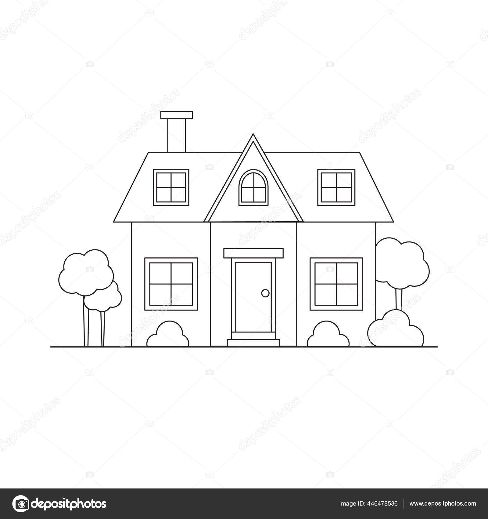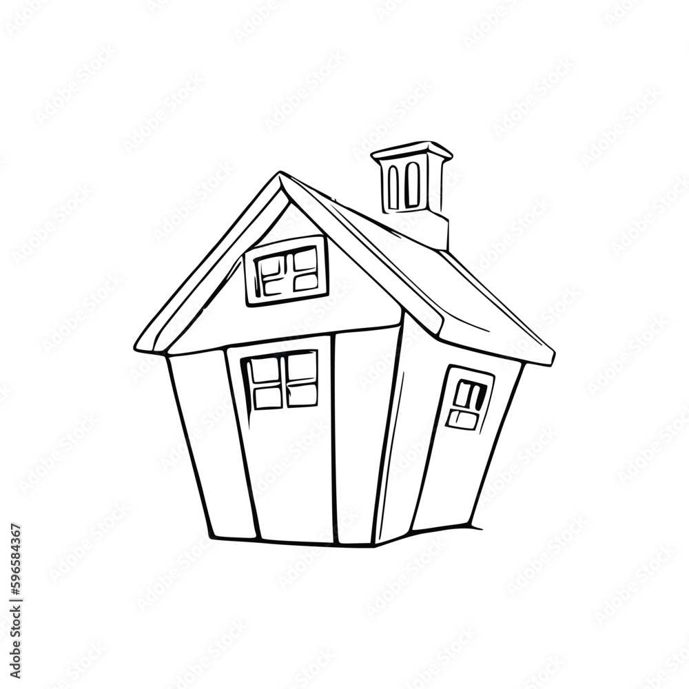 Nice Simple House coloring book, Line art house, Outline house, House coloring page, Line art Home. black and white coloring pages. Stock Vector | Adobe Stock